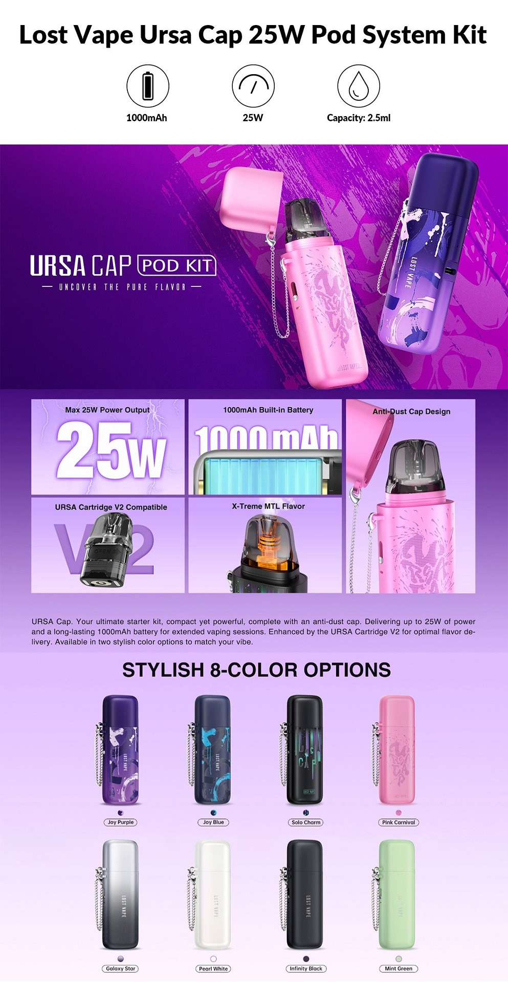 پاد اورسا کپ برند لاست ویپ | Lost Vape Ursa Cap Pod Kit 1000mAh LOST VAPE URSA CAP 25W